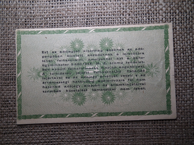 Ötvenezer adópengő 1946 , vízjel nélküli