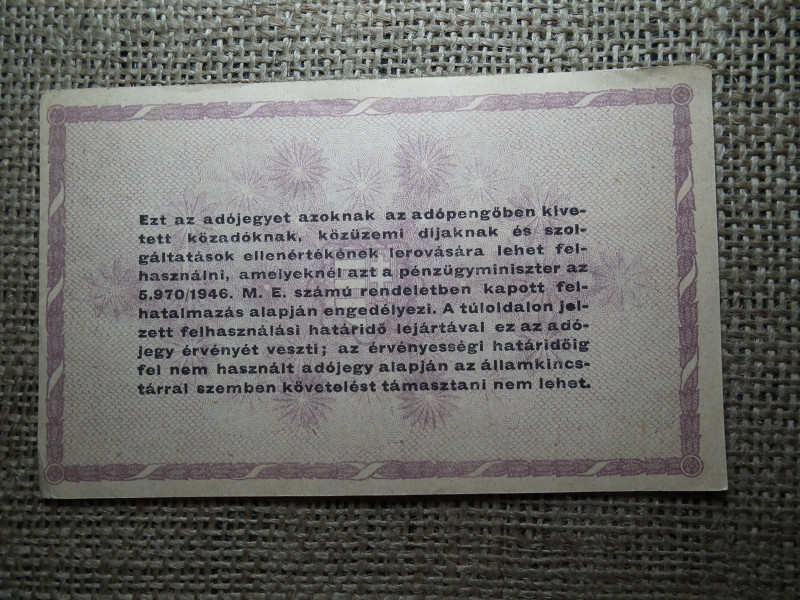 Százezer adópengő 1946 , vízjeles , sorszám nélkül !