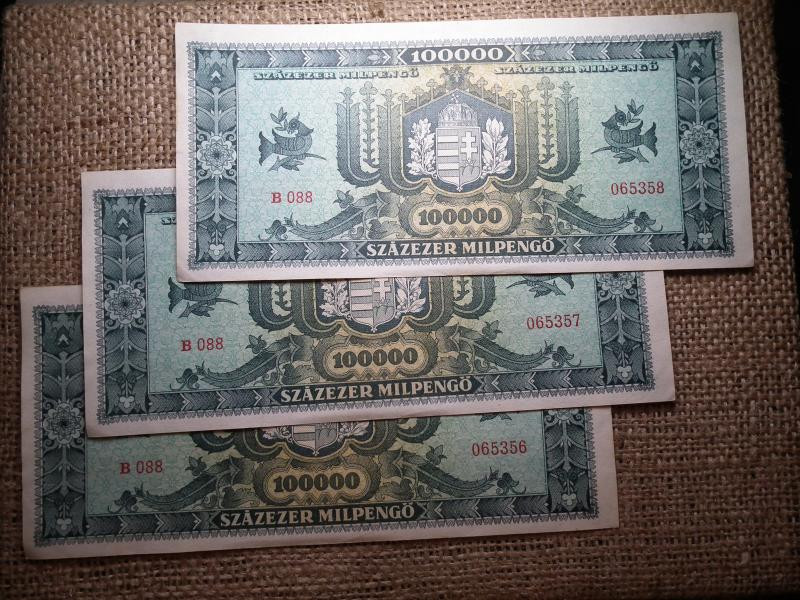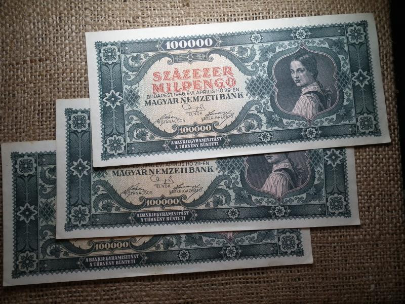 Százezer Milpengő, 1946, 3 db sorszámkövető, hajtatlan