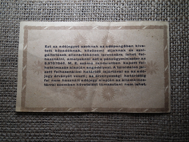 Tízezer Adópengő 1946 , százezer fölötti , nyomdahibás , eltolódott