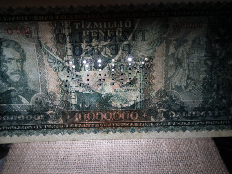 Tízmillió Pengő 1945 , Nagyon ritka MINTA perofárlt , O 000 000000 ! R ! Extra