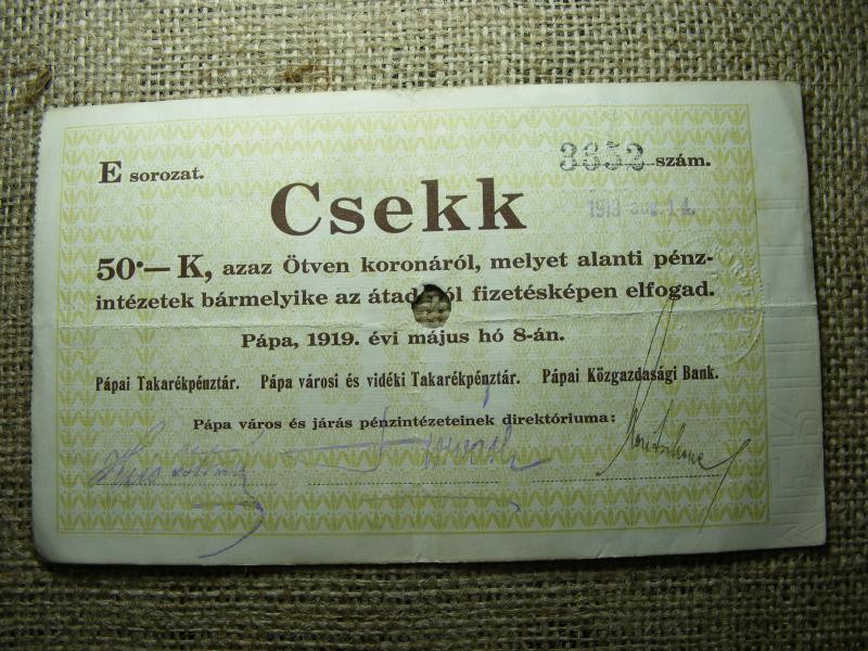 A Pápa 50 korona szükségpénzt 1919-ben nyomtatták, és a történelmi szükségpénzek gyűjtőkörében rendkívül keresett darab. Ez a bankjegy a korabeli gazdasági helyzet és a pénzforgalom egyedülálló emléke... tovább