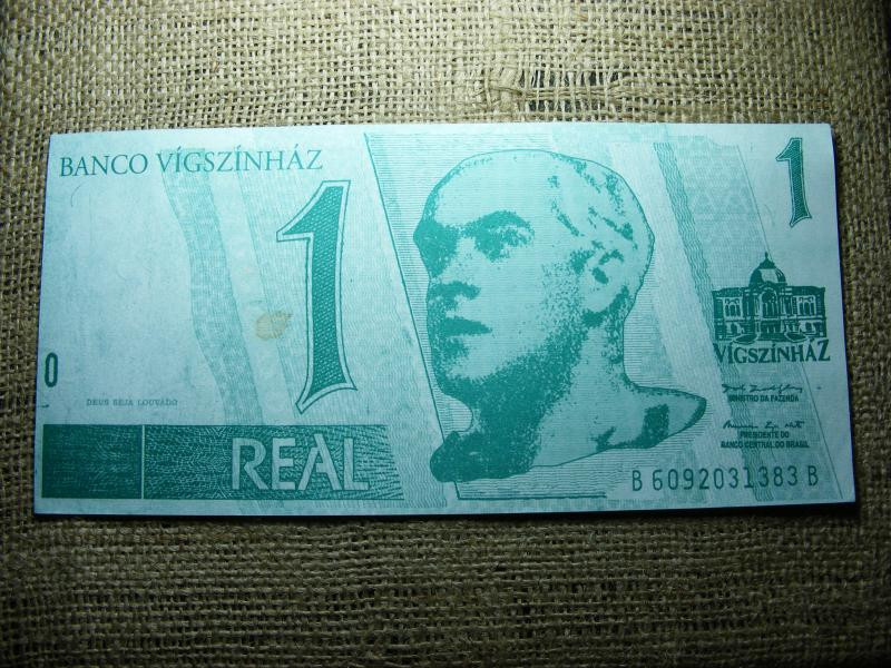Ez a színházi kellékpénz a Vígszínház számára készült, és 1 real címletet képvisel. A szükségpénzeket gyakran használták színházi előadások során, hogy a valódi pénz helyett színpadi célokra szolgálja... tovább