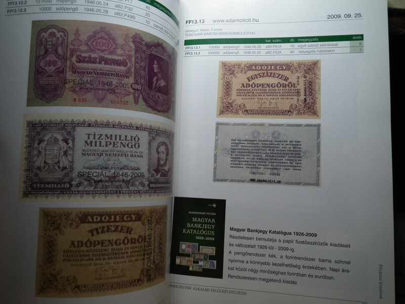Adamovszky István - Bankjegyek alkalmi felülbélyegzései , újszerű