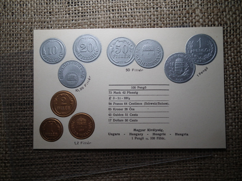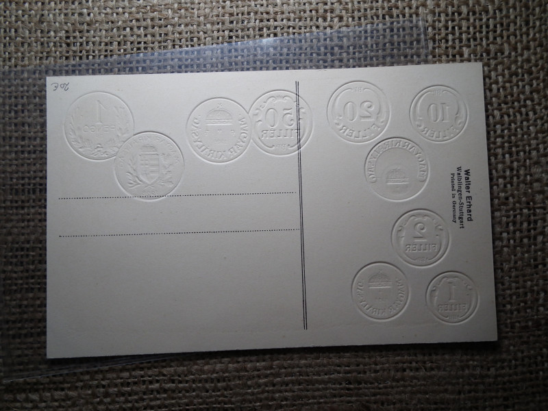 Magyarország érmék dombornyomott pénzes levelezőlap ! Pengő rendszer ! Nagyon ritka !