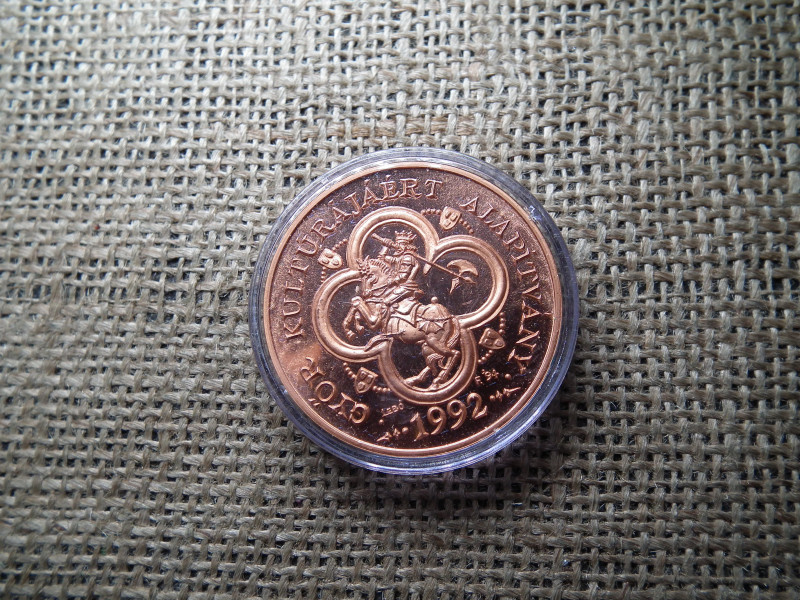 A Lebó Ferenc (1960-) 1992. Győr Kultúrájáért Alapítvány 1992 bronz emlékérem kiváló állapotú numizmatikai ritkaság. Ez a gyűjteményes érme magában hordozza a múlt idők kulturális örökségét és értékeit. Az érem bemutatja a Kultúrájáért Alapítvány 1992-es megszületését, melyet Lebó Ferenc kimagasló tevékenysége inspirált. Ez a bronz emlékérem igazi gyöngyszem a numizmatika világában, mely méltó helyet foglalhat el bármelyik kollekcióban. A rendkívül részletgazdag díszítések és az érem letisztult, mégis erőteljes designja minden tekintetet magára von. A Lebó Ferenc emlékéremmel a gyűjtők lehetőséget kapnak arra, hogy részesei legyenek a magyar kultúra történetének. Ez az érem nem csupán egy tárgy, hanem egy időutazás azon események világába, melyek megérdemlik, hogy örökké emlékezzünk rájuk. Szerezd be most ezt az egyedülálló numizmatikai kincset, és gazdagítsd gyűjteményedet egy olyan darabbal, mely méltán viseli Lebó Ferenc és a Győr Kultúrájáért Alapítvány emlékét!