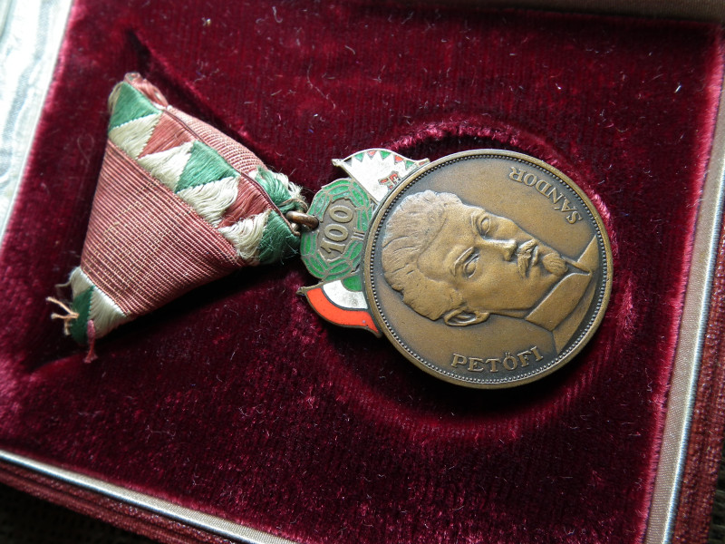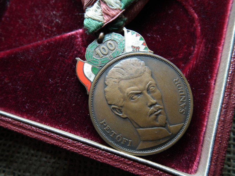 Petőfi 100 , Zománcozott emlékérem 1948 - eredeti szalagján , eredeti dobozában ! 1848 ! A néppel tűzön vízen át !