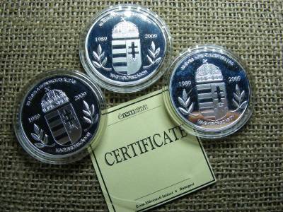 Rendszerváltás szett, 1990, ezüstözött, díszdobozban