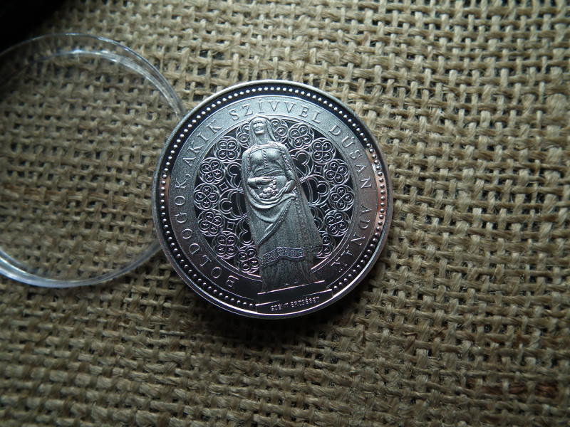 Szent Erzsébet Plébániatemplom , 1901 - 2001 , boldogok akik szívvel dúsan adnak , ezüst , díszdobozos érem