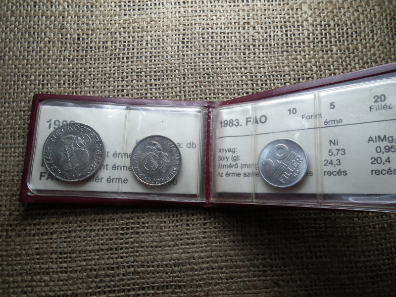 1983 évi Fao érme sor , 20 Fillér , 5 , 10 Forint , Eredeti tokban