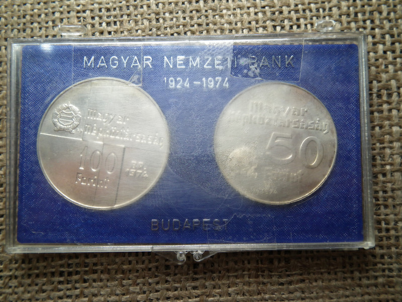 50 éves a Magyar Nemzeti Bank pár 100 és 50 Forint 1974 , eredeti tokban