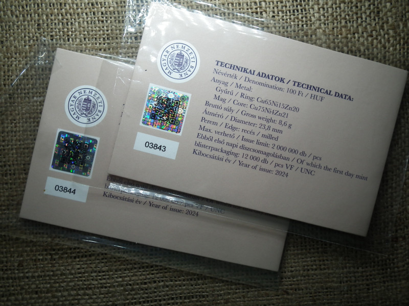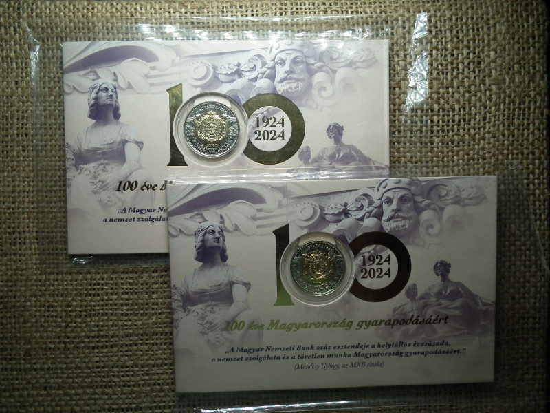 100 éves a Magyar Nemzeti Bank MNB 100 forint 2024 - első napi veret , 2 db sorszámkövető