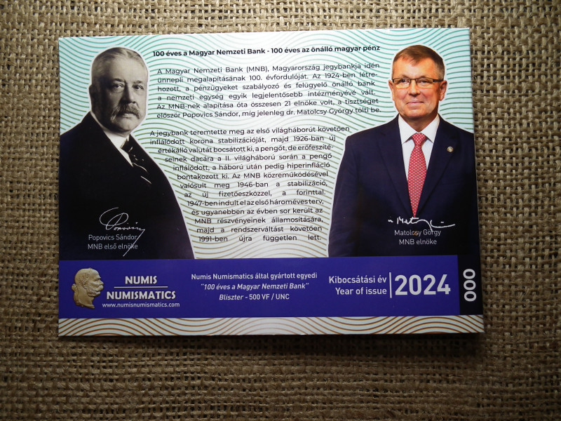 100 éves az MNB 100 forint 2024 , Sorszámozott bliszter ! Ritka MINTA 000 sorszám !