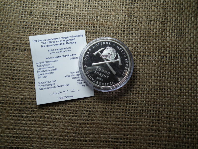 150 éves a Szervezett Magyar Tűzoltóság ezüst 10000 Forint 2020 + certi ,D