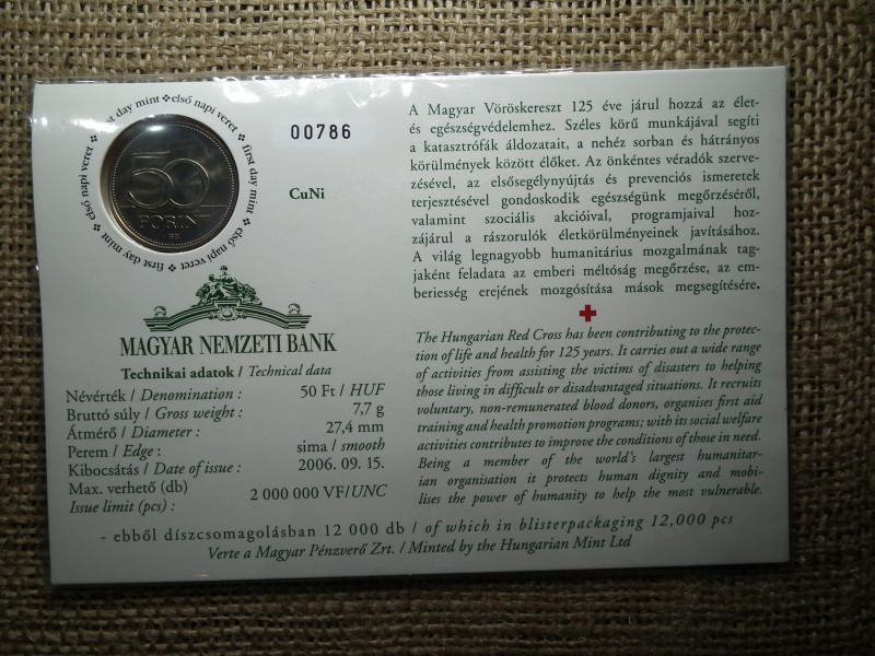 50 Forint 2006 Magyar Vöröskereszt - Első napi kiadás , alacsonyabb sorszám !