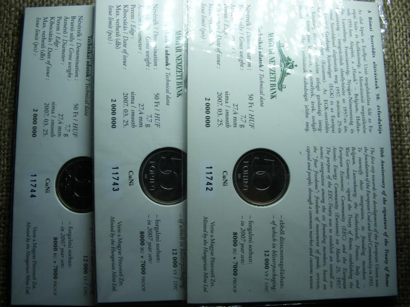 50 forintos érme, 2007, római szerződés, 3 db sorszámkövető