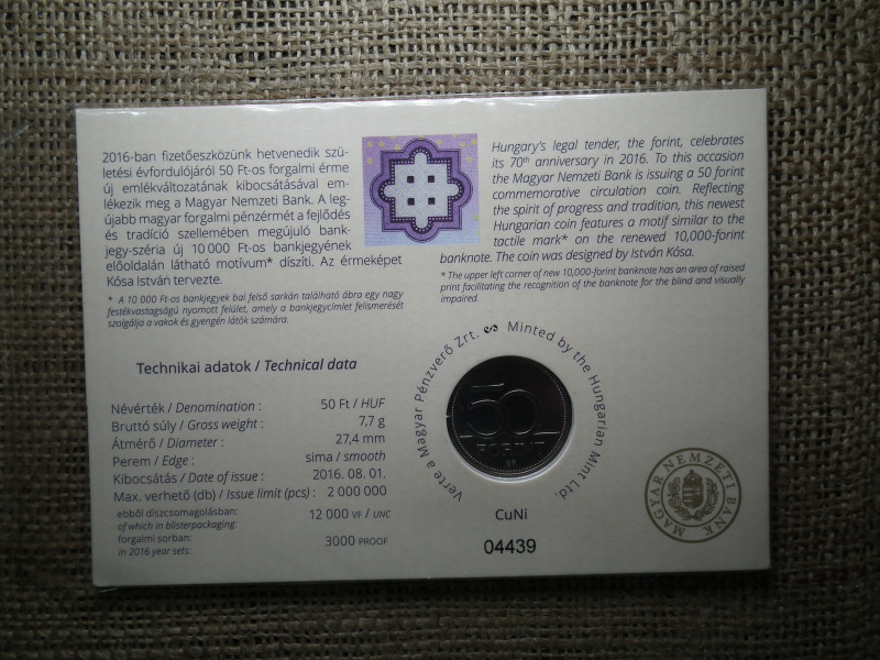 70 ÉVES A FORINT 50 FORINT 2016 ELSŐ NAPI VERET , DÍSZCSOMAGOLÁSBAN !