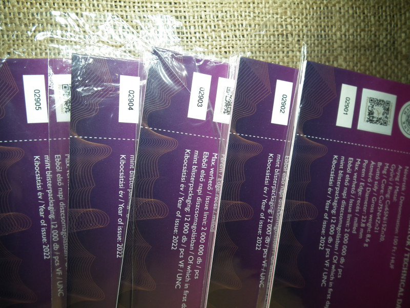 PÉNZMÚZEUM - 100 FORINT 2022 BP - BLISZTERBEN - SORSZÁMKÖVETŐ ELSŐ NAPI VERETEK 5 db !