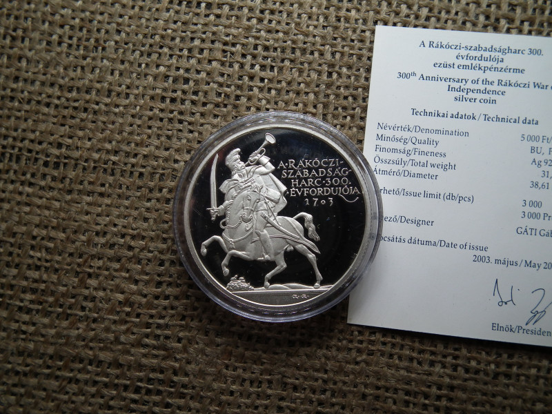 Rákóczi 5000 Forint 2003 PP ezüst , + certi