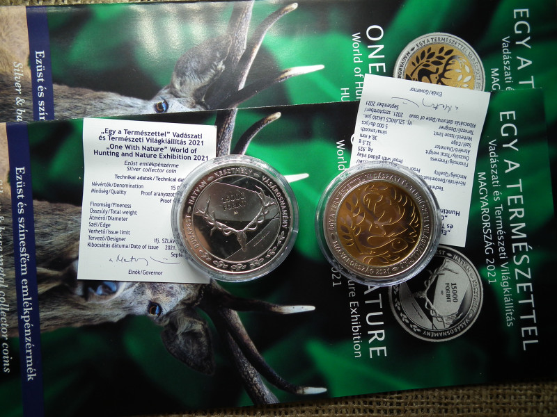 VADÁSZATI ÉS TERMÉSZETI KIÁLLÍTÁS / EZÜST PP EMLÉKÉRME / 15000 forint 2021 , + prospektus + certi , ár/db , D