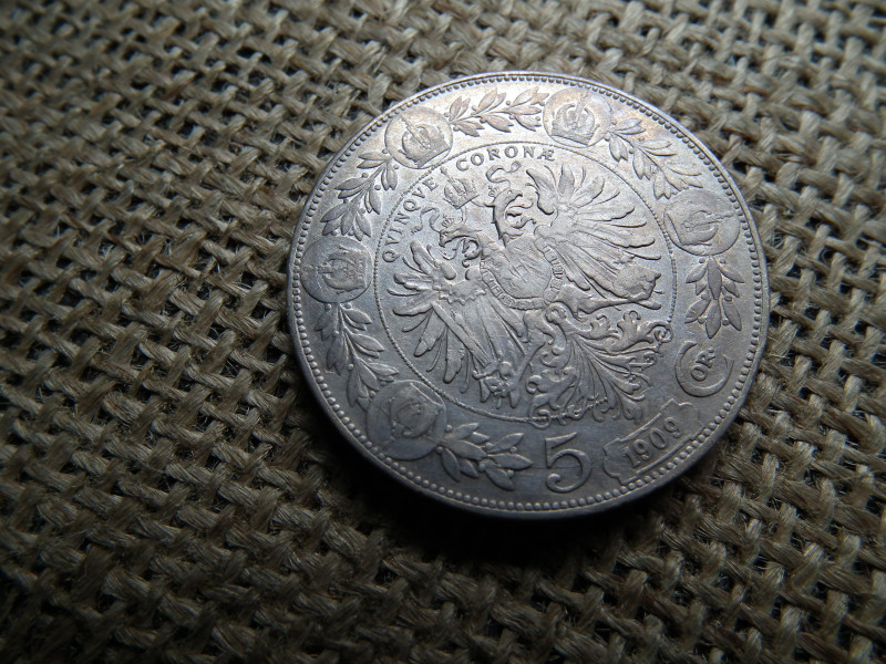 Ezüst 5 corona 1909 , korona , schwartz fej