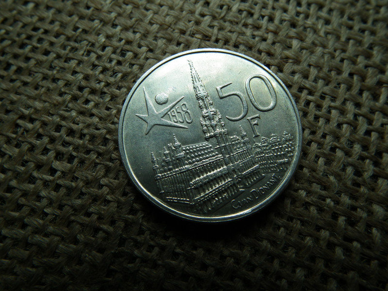 Belgium , ezüst 50 frank 1958 , francs , I. Baudouin, Brüsszeli Világkiállítás , francia szöveg