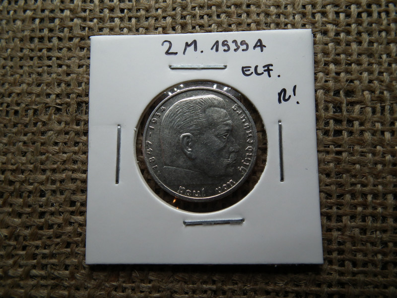 Birodalmi ezüst 2 márka 1939 A , Verdehibás , elfordult ! Ritka