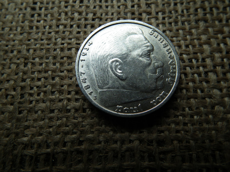 Birodalmi ezüst 5 márka 1936 J , Nagy sasos - horogkeresztes