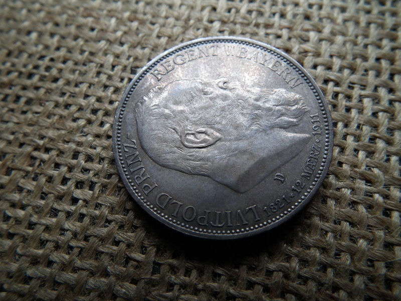 Ezüst 3 márka 1911 D , Mark , Luitpold régens herceg 90. születésnapja