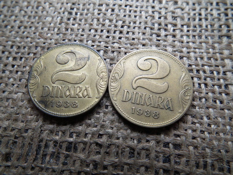 Jugoszlávia 2 Dinara 1938 , dinár - Petar II nagy korona és ritka kis korona !