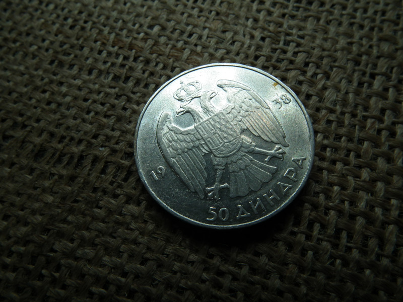 Jugoszlávia , ezüst 50 dinara 1938 , dinár