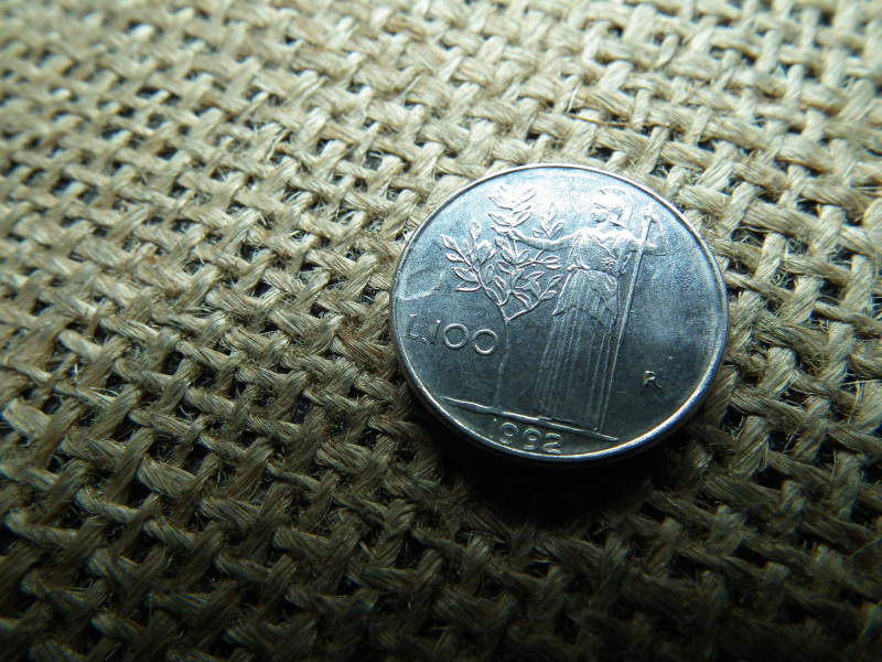Olaszország 100 líra 1992 , lire , verdehibás , idegen anyag benyomódás ! Hibás