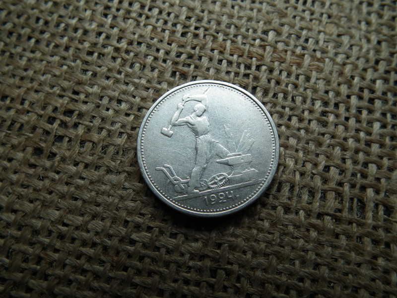 Oroszország , ezüst 1/2 rubel 1924 , Poltinnik , Szovjetunió