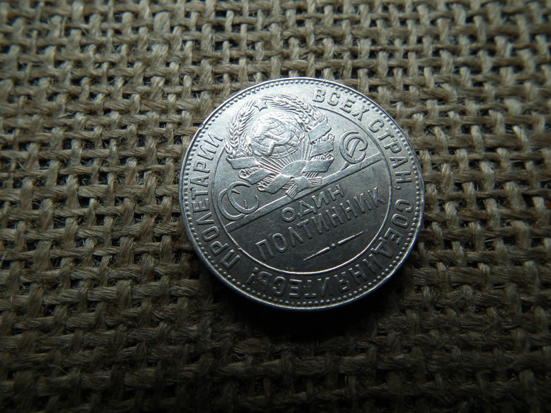 Oroszország , ezüst 1/2 rubel 1924 , Poltinnik , Szovjetunió