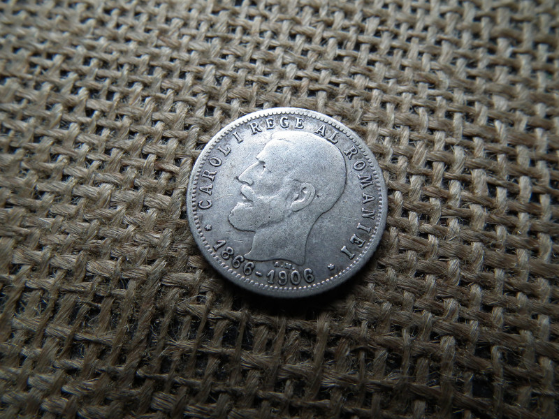 Románia ezüst 1 lei 1906 , leu , I. Károly uralkodásának évfordulója