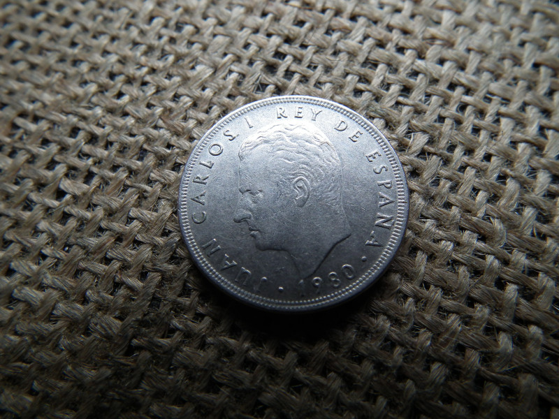 Spanyolország 5 pesetas 1980 , 1982 , Peseta , , verdehibás , idegen anyag benyomódás ! Hibás