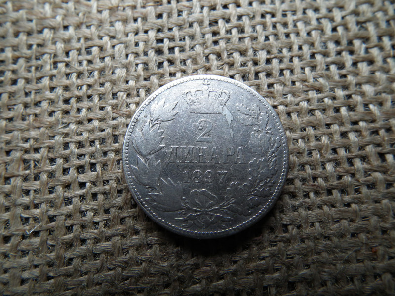 Szerbia , ezüst 2 dinara 1897 , 2 dinár - I. Sándor