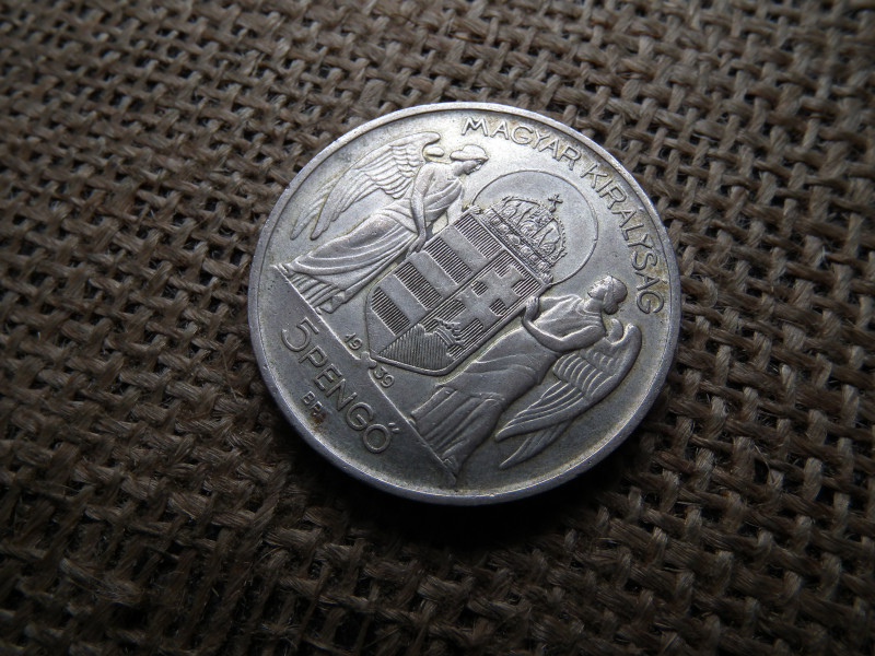 Horthy , ezüst 5 pengő 1939