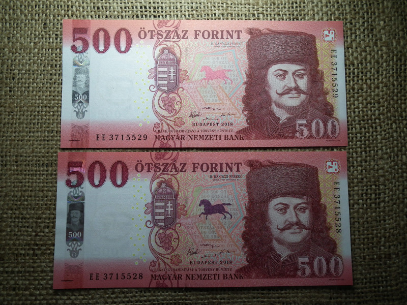 500 forint 2018 EE , 2 db sorszámkövető , UNC