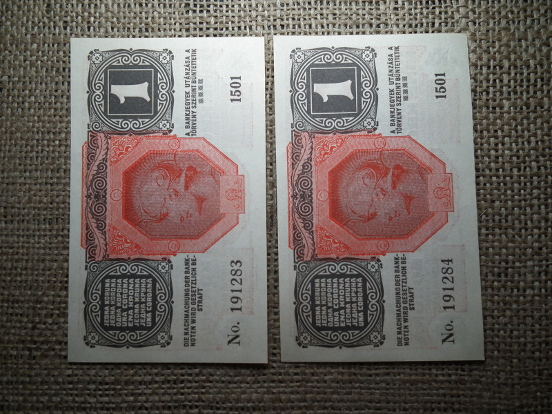 1 korona 1916 DÖ , 2 db sorszámkövető