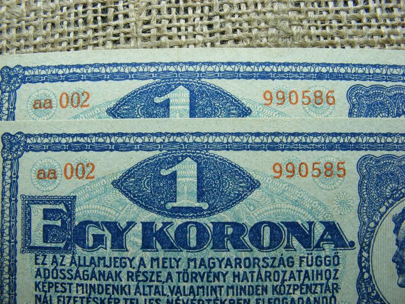 1 korona bankjegy, 1920, rozsdavörös, sorszámkövető pár