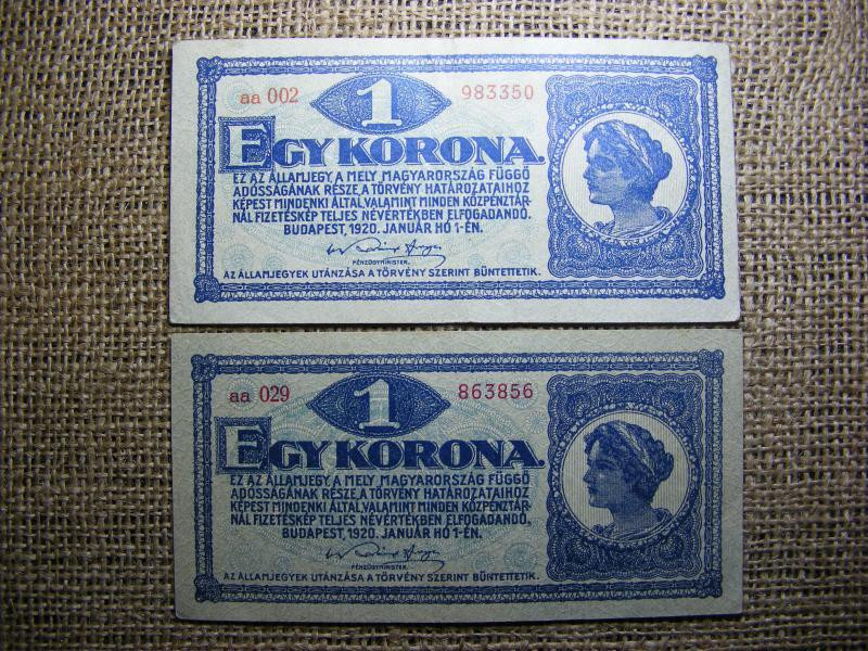 1 korona bankjegy, 1920, sorszám színváltozat pár