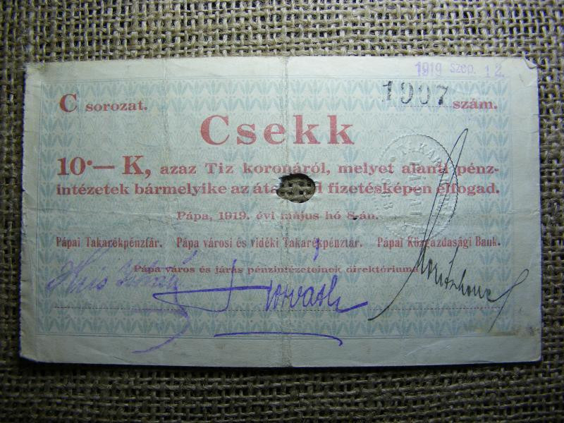 Az 1919-ben nyomtatott 10 koronás bankjegy a Pápa Csekk vízjellel ellátott, történelmi értékű darab. Ez a papírpénz a korona korszak egyik jellegzetes példánya, amelyet a gyűjtők körében nagyra értéke... tovább