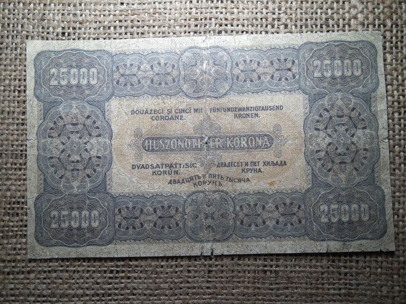 25000 korona 1923 , nagyon ritka , javított , préselt ,eredeti bankjegy !