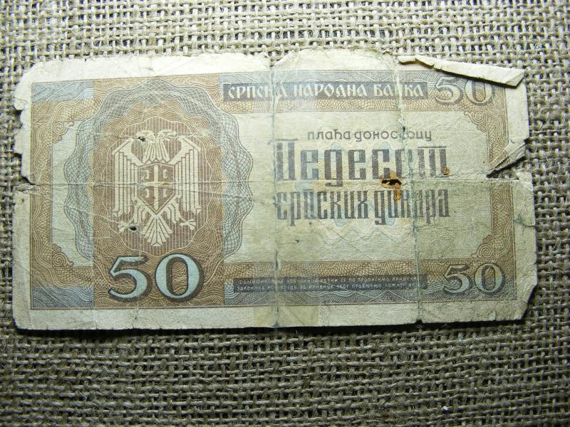 50 dinár, 1942, szerbiai bankjegy