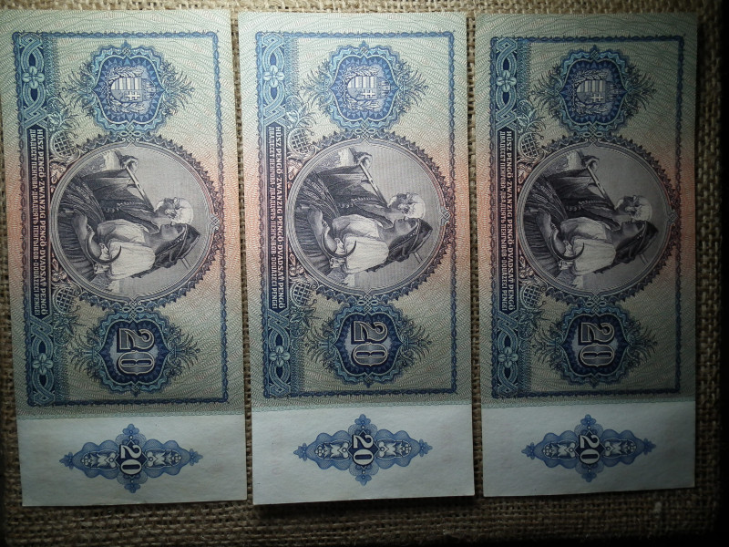 Az 1941-es 20 pengős papírpénz egy igazi ritkaság a magyar numizmatikai gyűjteményekben. A 3 darabos sorszámkövető készletben található pengők magukban hordozzák a múlt emlékeit és történelmét. Ezek a papírpénz darabok idővel egyre nagyobb értéket képviselnek azok számára, akik a numizmatika iránt érdeklődnek. A pengők tökéletes állapotúak, az 1941-es évszám szépen látható mindegyiken. A pengők minősége garantált, és ideális darabok gyűjtemények bővítéséhez vagy befektetési célból. Ne hagyja ki ezt a lehetőséget, és szerezze meg ezt a különleges 20 pengős 1941-es papírpénz sorszámkövető készletet! Nem feledkezzen meg arról, hogy a numizmatikai gyűjteményeknek mindig helyet kell biztosítania az egyedülálló és történelmi értékű papírpénz daraboknak. Az 1941 20 pengős sorszámkövető készlet kiváló választás minden gyűjtő számára, aki a magyar pengők korszakát szeretné felfedezni és bővíteni. Szerezze be most ezt az egyedi pengő készletet, és tegye még gazdagabbá gyűjteményét!