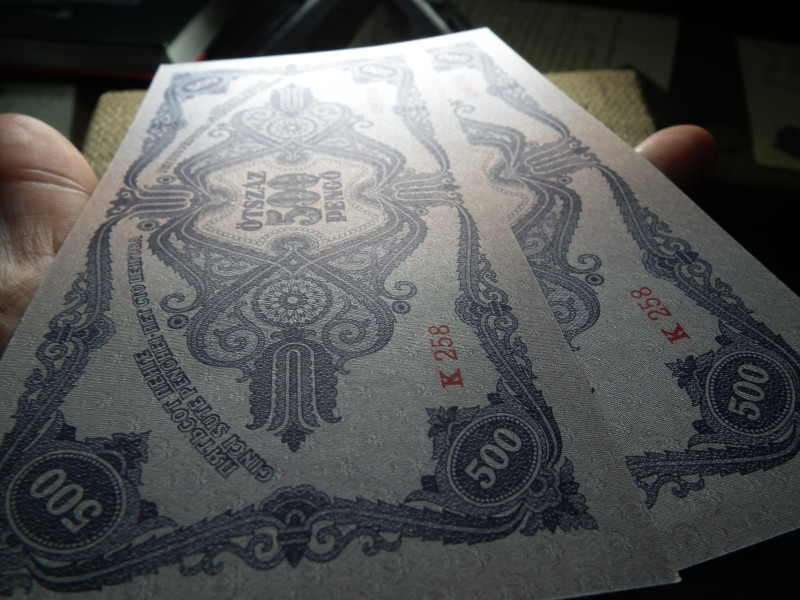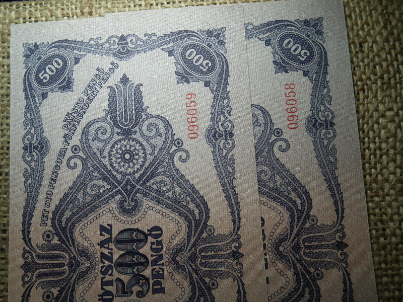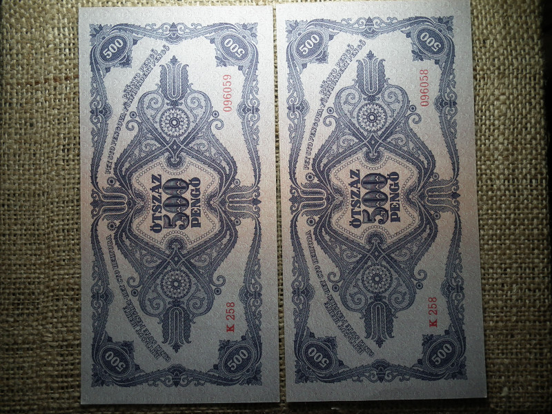 500 pengő 1945 , 2 db hajtatlan sorszámkövető