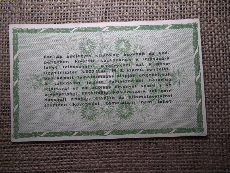 Ötvenezer adópengő 1946 , vízjel nélküli