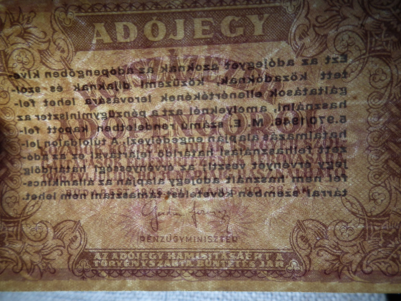 Százezer Adópengő 1946 , sorszám nélkül ,vízjeles