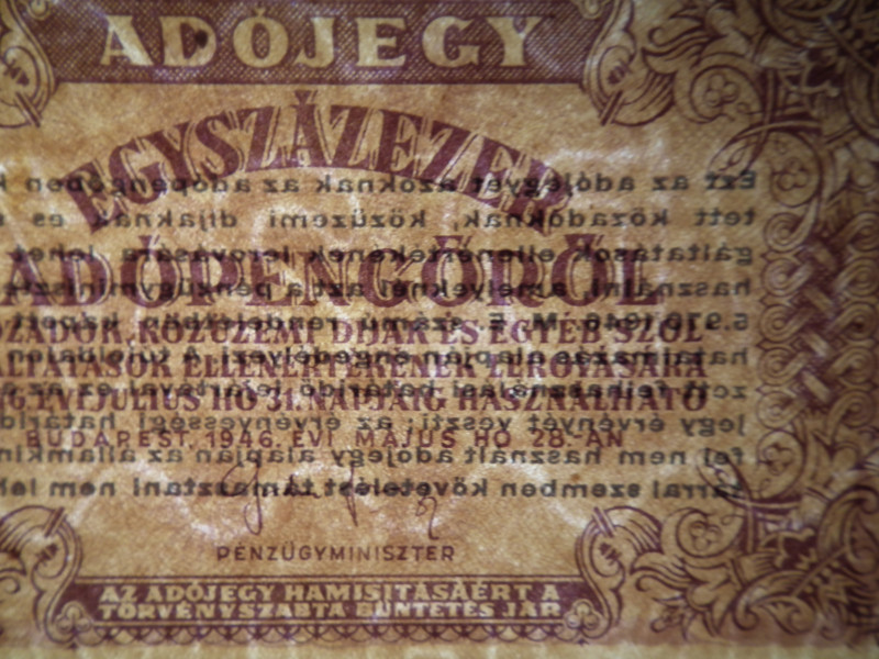 Százezer adópengő 1946 , vízjeles , sorszám nélkül !